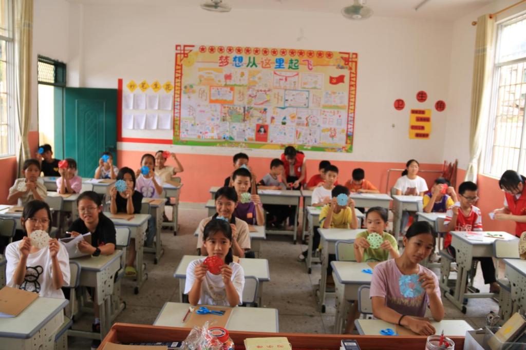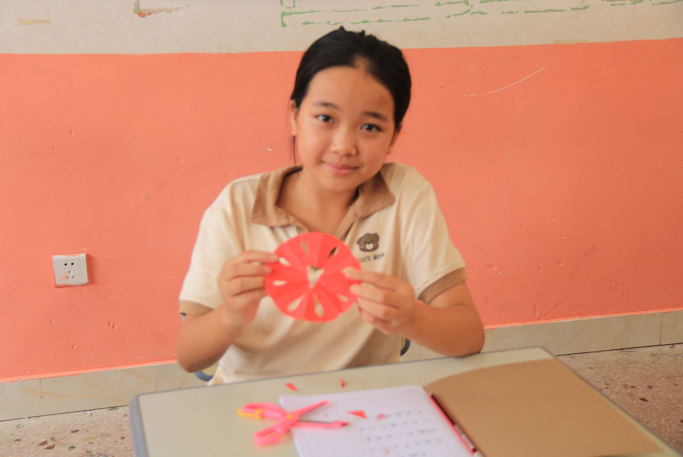 小朋友们展示剪纸作品。中国青年网通讯员 黄美婷 供图