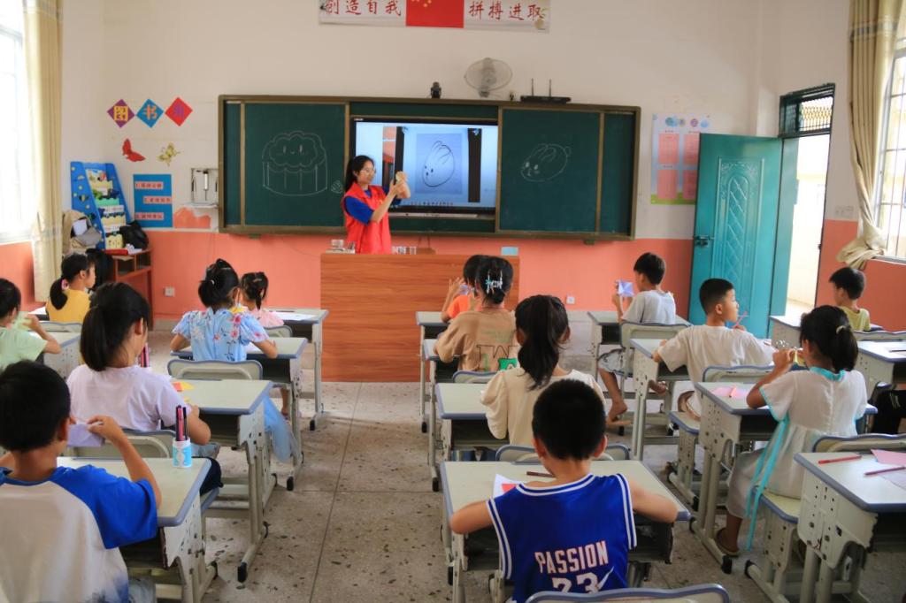 图为志愿者教同学们做折纸手工。中国青年网通讯员 黄美婷 供图