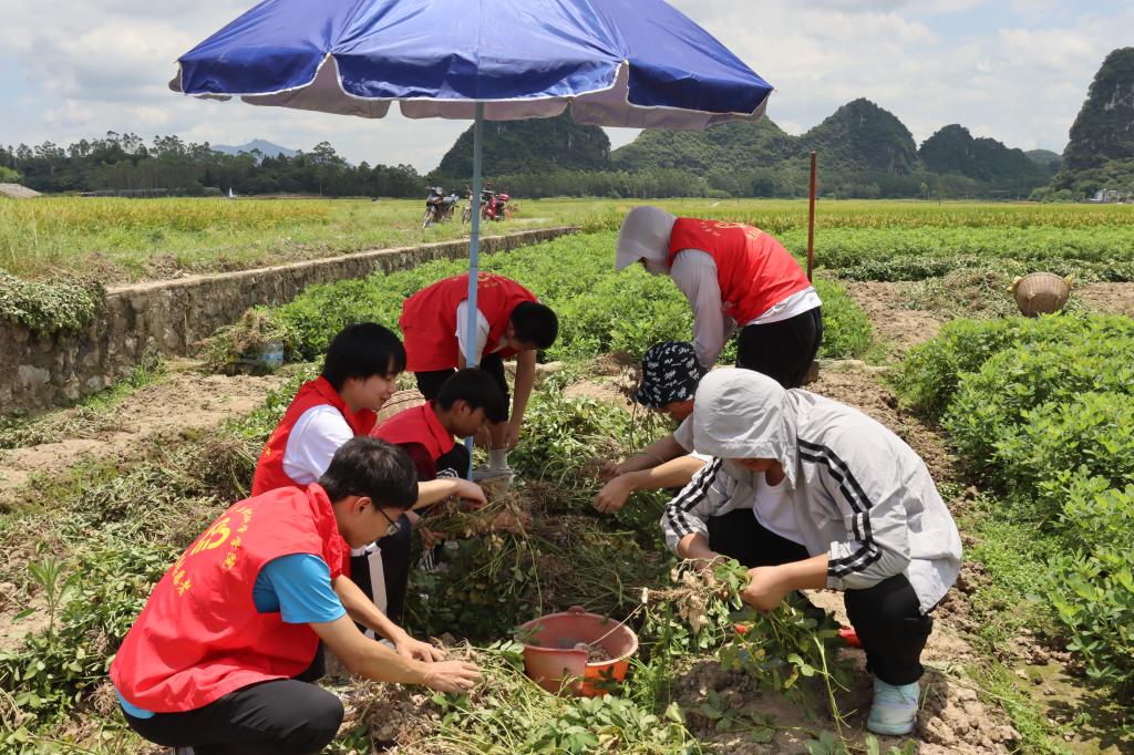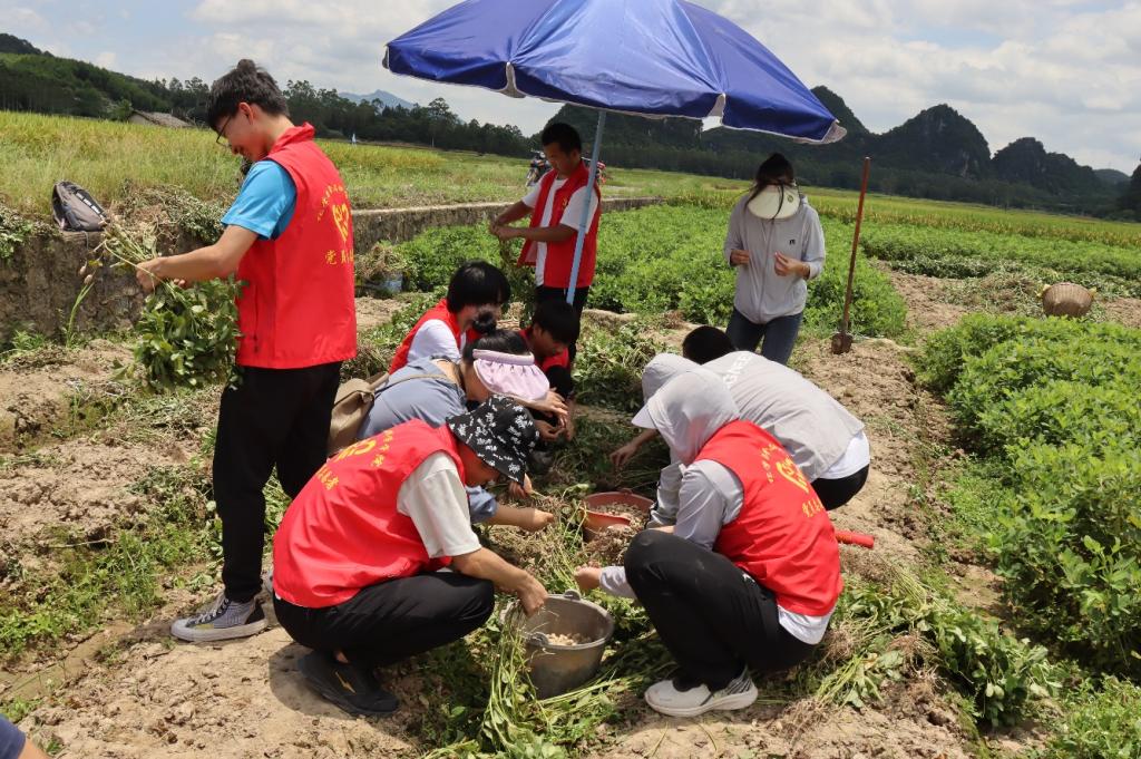 图为志愿者帮农户拔花生。中国青年网通讯员 韦莉幸 供图