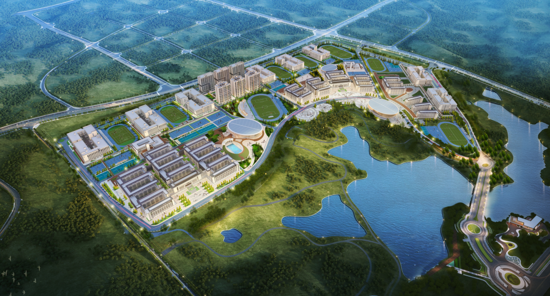 玉林新世纪教育城,占地1360亩、超30亿投资的校园规模。坐落于广西玉林北流市印塘圭江大桥与324国道交汇处南侧,是一所集幼、小、初、高于一体的15年寄宿制学校,目前已被列入自治区层面统筹推进重大项目,是北流市委市政府大力引进的重点民生工程。