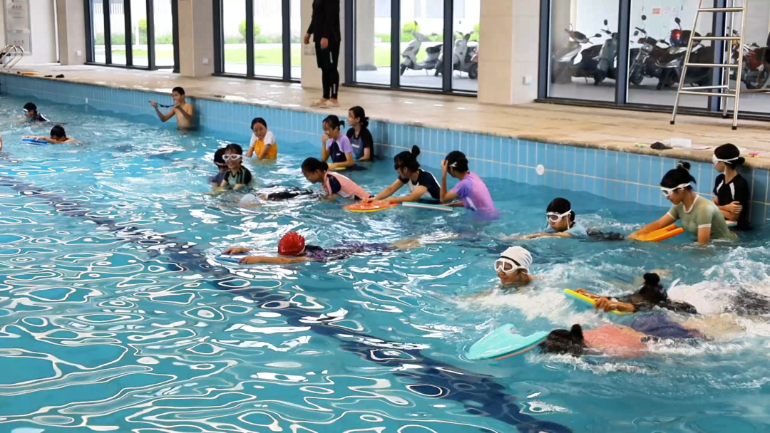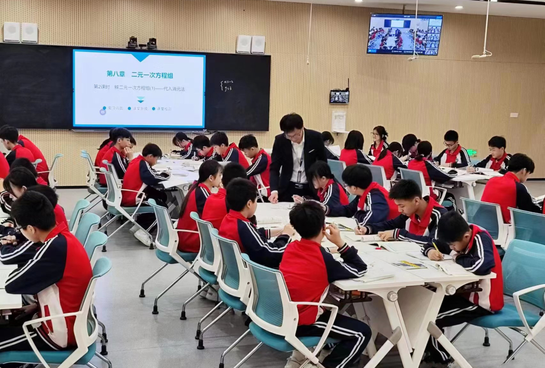 校园内教学楼首层全部架空,楼宇之间打造风雨连廊,避免师生风吹日晒。校园另有藏书超二十万册的智慧图书馆,5000人容量的体育场,25Mx50M室内外标准游泳池,40多个篮球场及20多个气排球/羽毛球场等设备先进齐全的功能室以及运动场所,还有劳动教育实践基地,配备先进的教学与生活设施,打造安全、便捷、人性化的智慧校园。