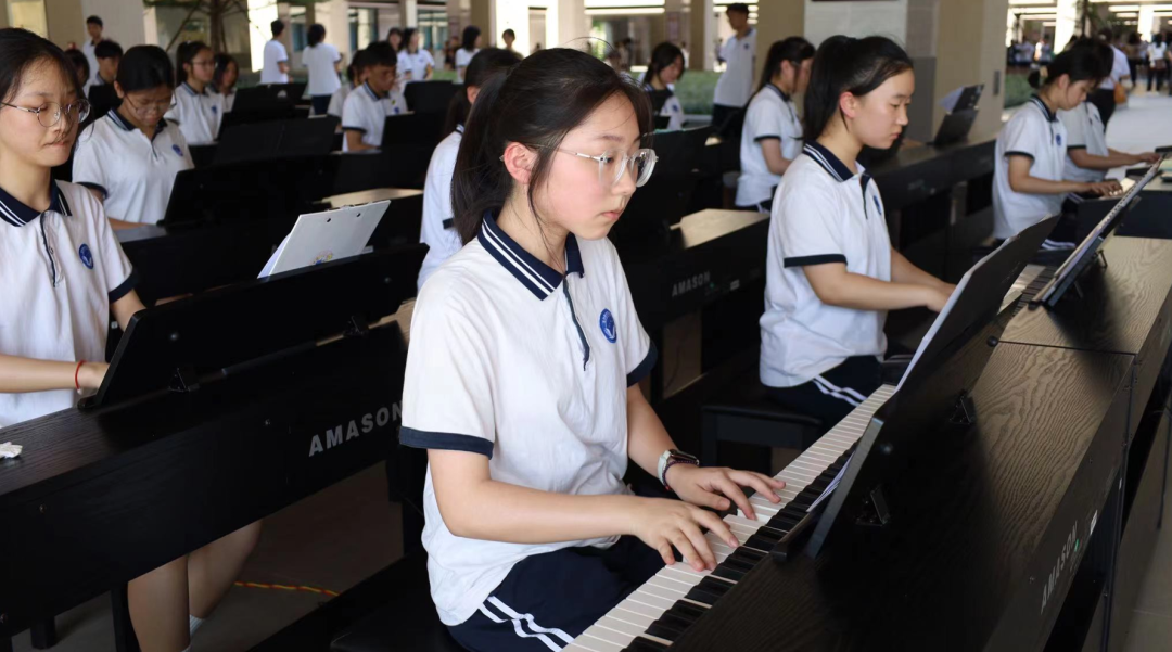 国家课程按照国家要求开足开齐,从一年级起开设英语课程,使用人教版教材与初中教学无缝对接。小学部在按照国家要求开足开齐国家课程的基础上,开设50多门体艺校本选修课,初中、高中均组建发展兴趣社团,旨在全面发掘学生各项潜力,让学生在体验式、参与式的学习中培养审美情操、提升艺术表达、培养创新和思辨精神,从而实现高素质人才培养。